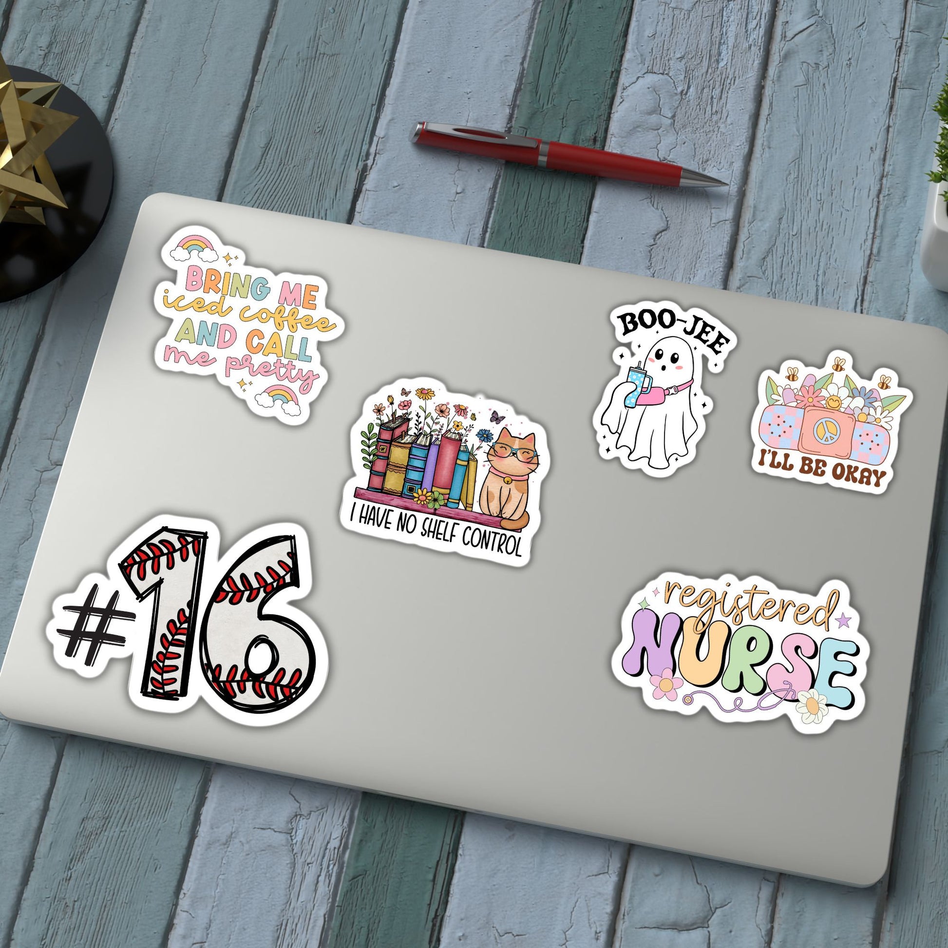 Stickers can be placed on almost any smooth surface- journals, notebooks, phone case ,Yeti, water bottles, laptop, mirrors, scrapbook, skateboard, guitar, etc. and make a great gift for friends and family for holidays or birthdays, or a great addition to your own collection.