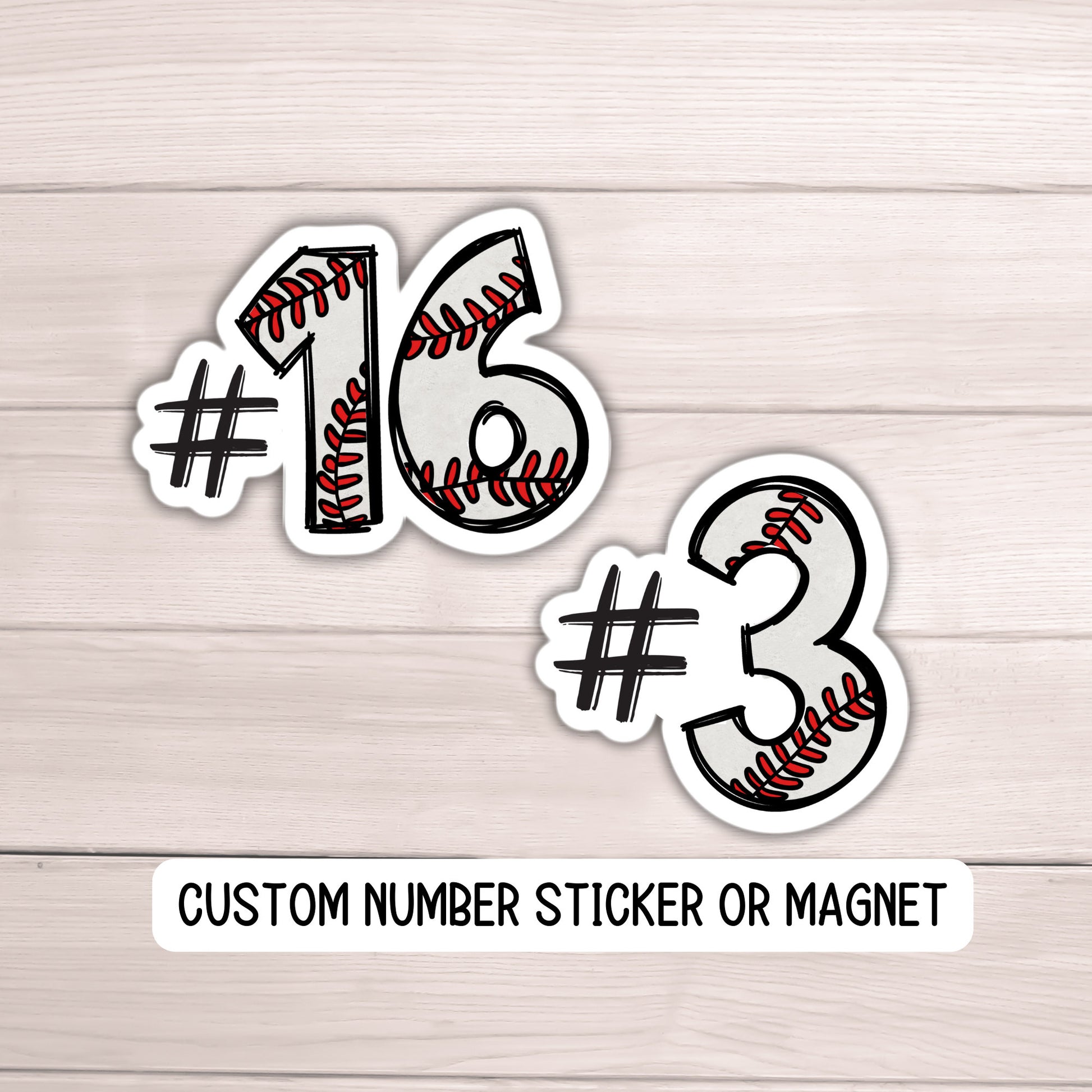 Custom name baseball number sticker or magnets