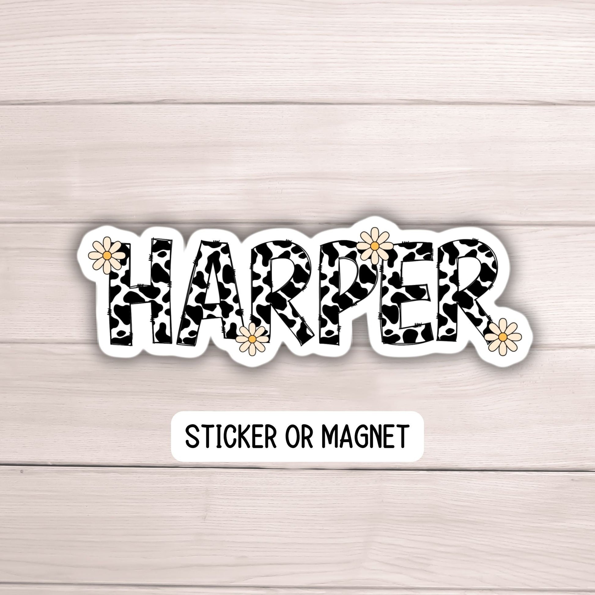 Cow print name sticker Personalized Custom Name Stickers Name magnet Water bottle sticker best friend gift Tumbler stickers Cow letters