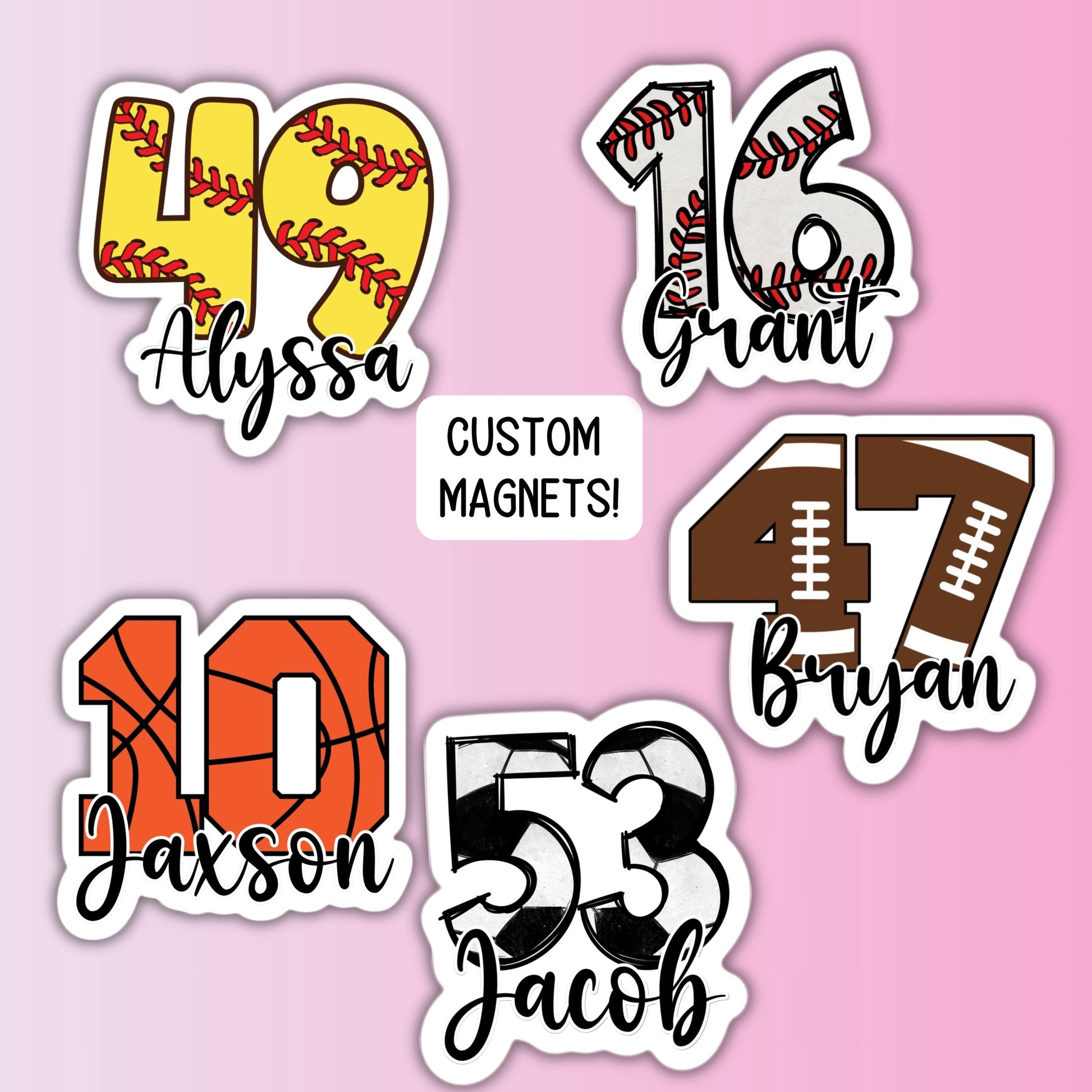 Custom name sports magnets! Choose your sport and add the name and number. Perfect way to decorate your locker and proudly display your sport!