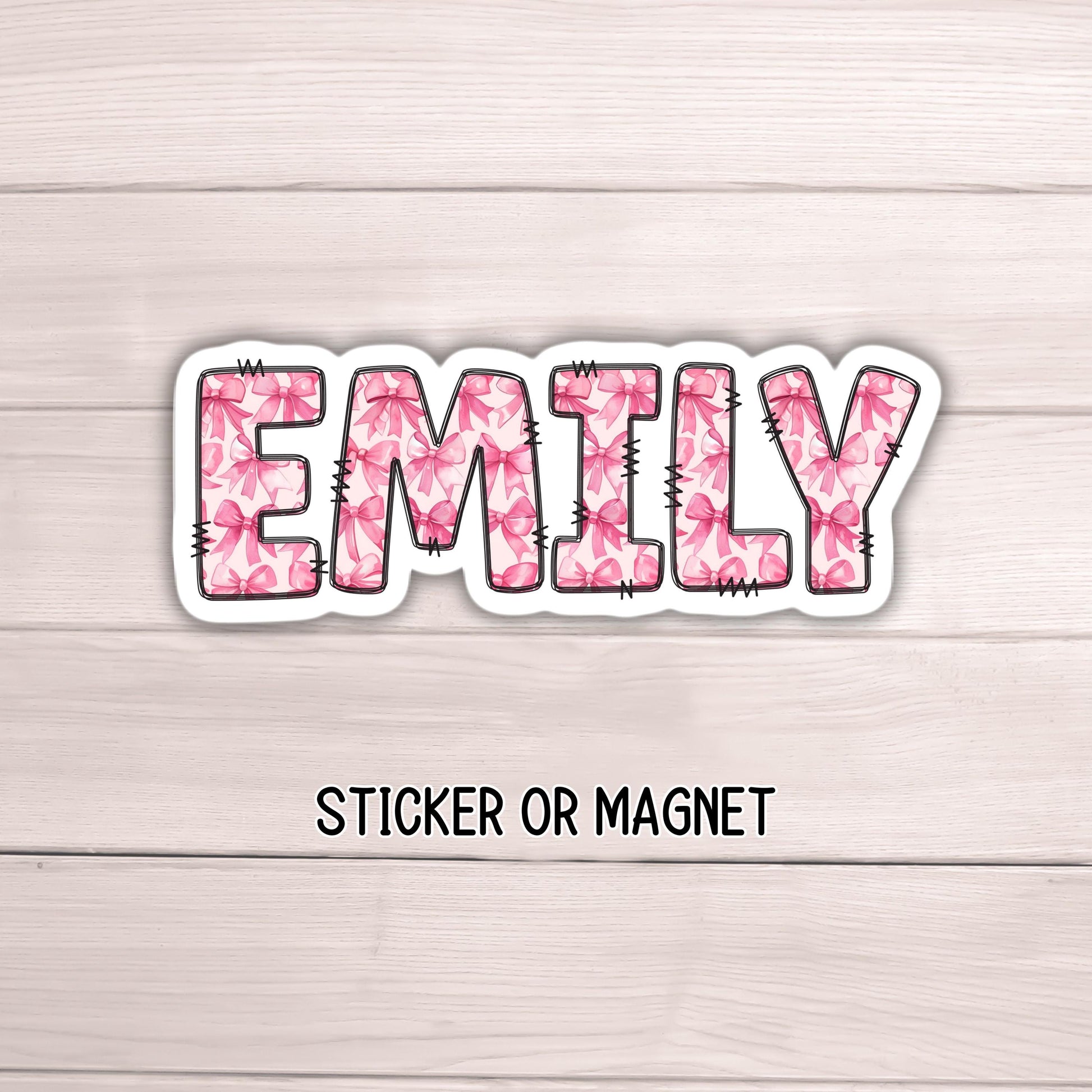 Custom name Bow sticker bow Pink Coquette Ribbon Bow Personalized name sticker Custom Name locker magnet water bottle name gift kids name