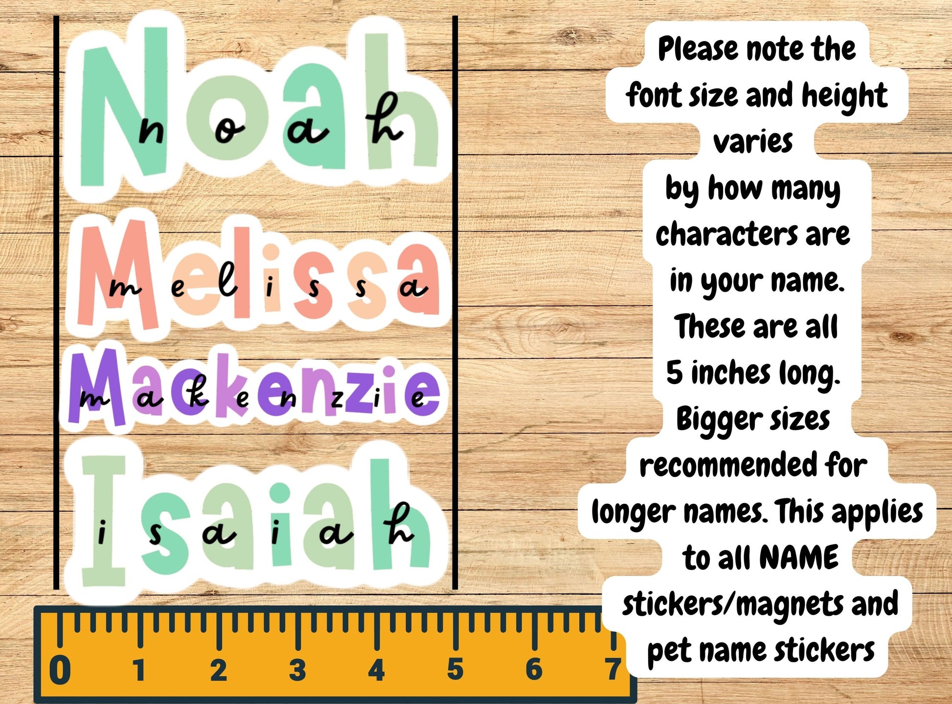 Font size will vary based on how many letters are in a name. For longer names I recommend to size up.
