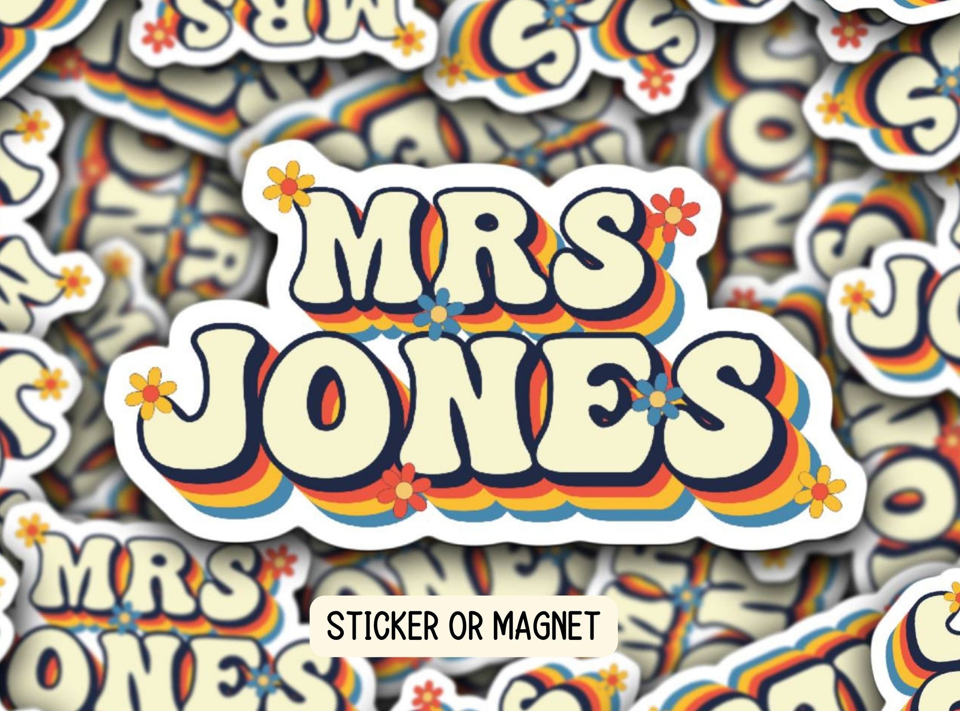 Custom teacher gift Teacher name sticker Personalized teacher sticker Custom Teacher Name Magnet Daisy flower Aesthetic Retro font Floral