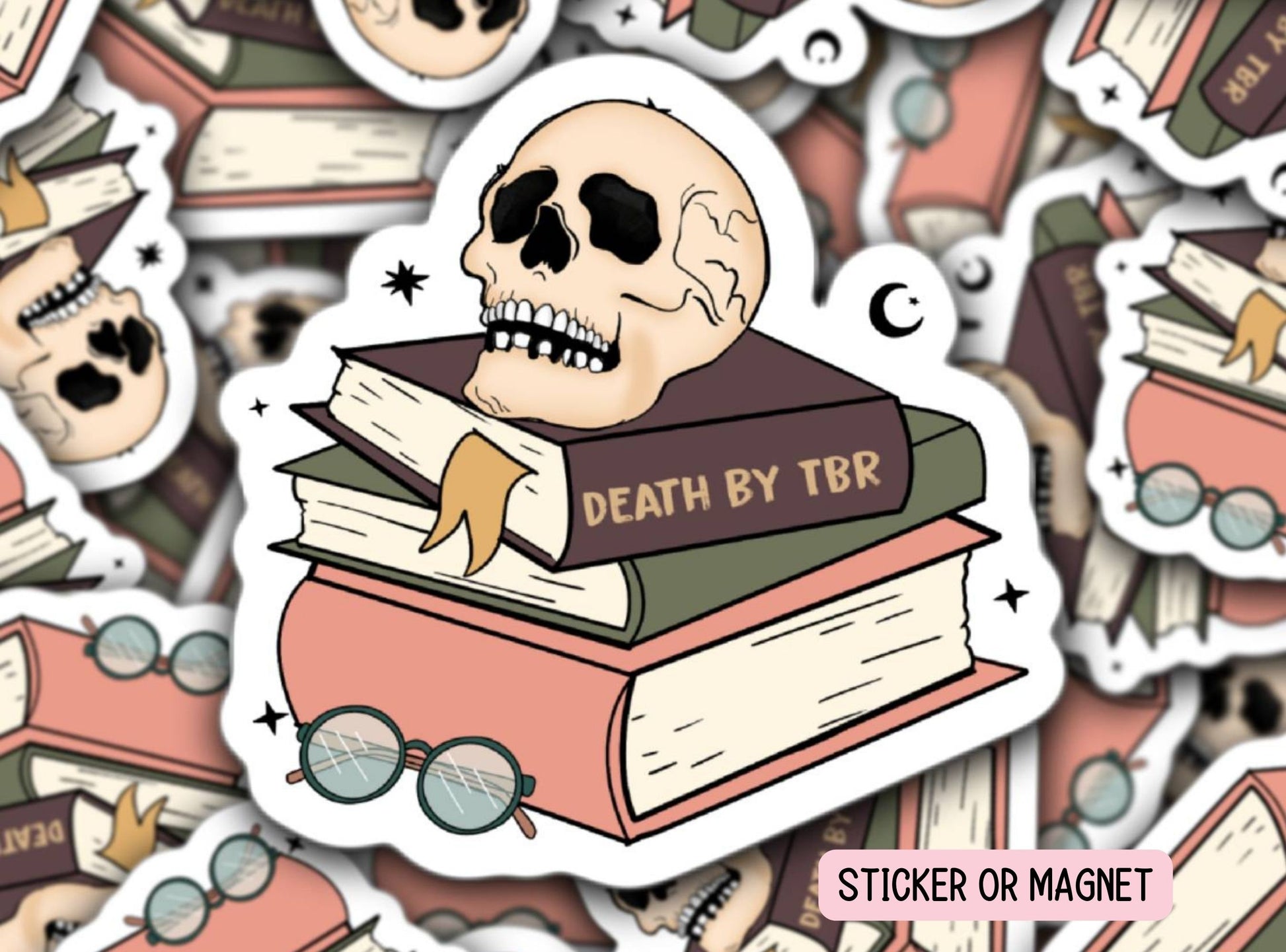 Death by TBR Sticker Reader gift Booktok Smut bookworm Book Bookish book club gift Book Decal for E reader Laptop Dark romance gift Magnet