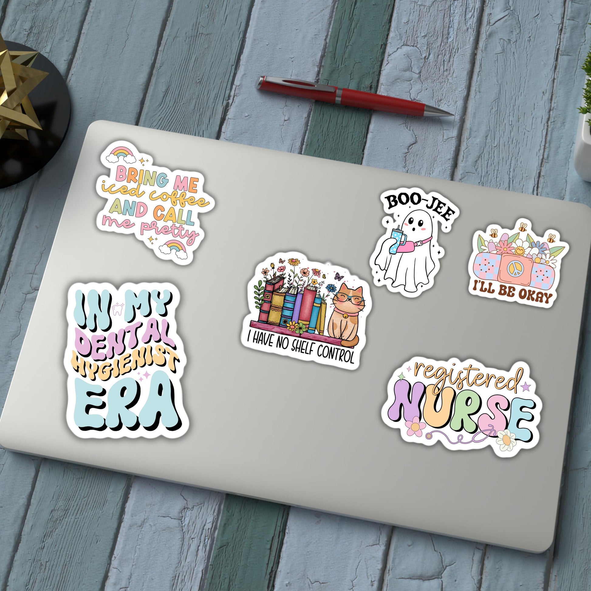 Stickers can be placed on almost any smooth surface- journals, notebooks, phone case ,Yeti, water bottles, laptop, mirrors, scrapbook, skateboard, guitar, etc. and make a great gift for friends and family for holidays or birthdays, or a great addition to your own collection.