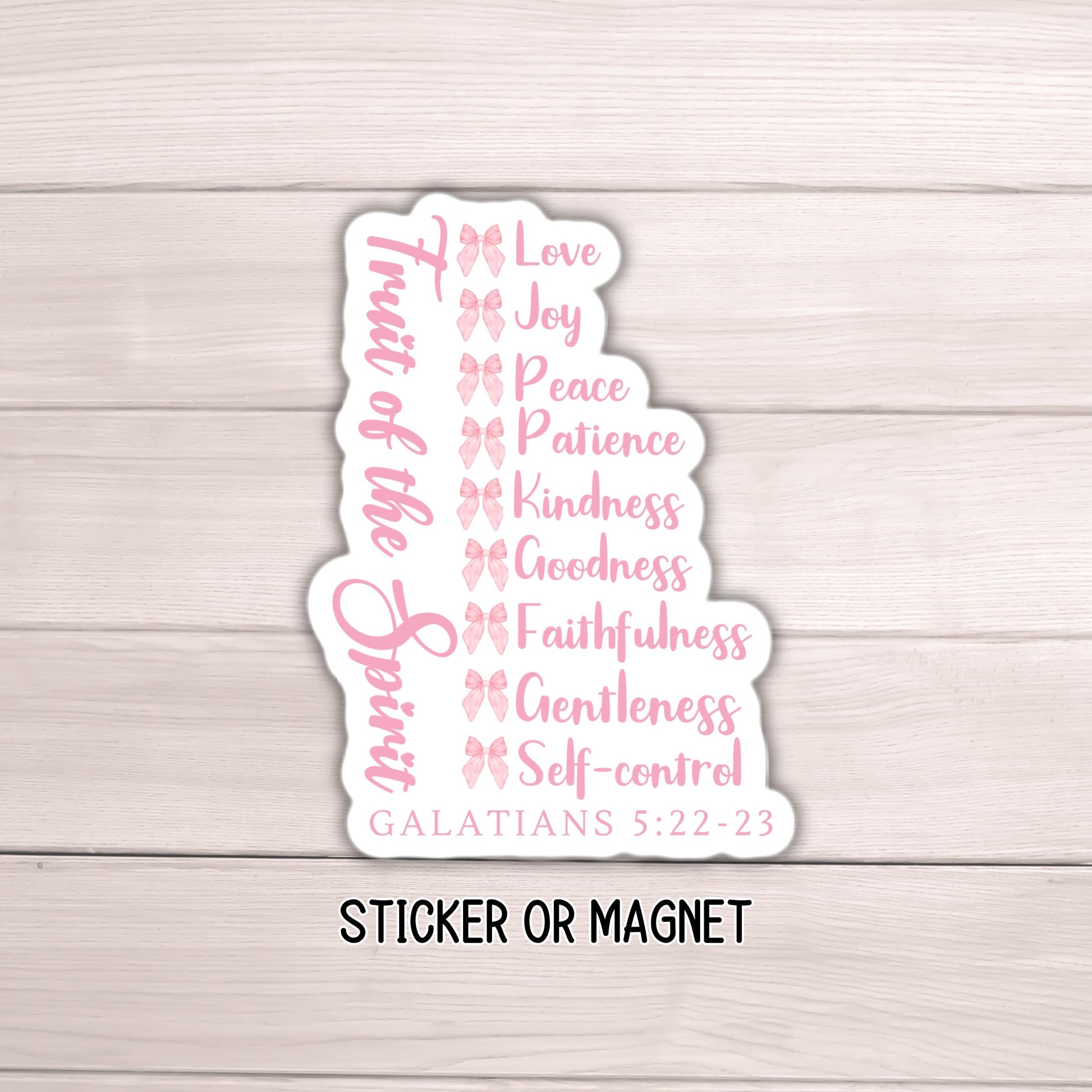 Fruit of the Spirit Coquette Christian Sticker magnet Jesus Bible study Faith Laptop Journaling love God pink bows religious prayer worship