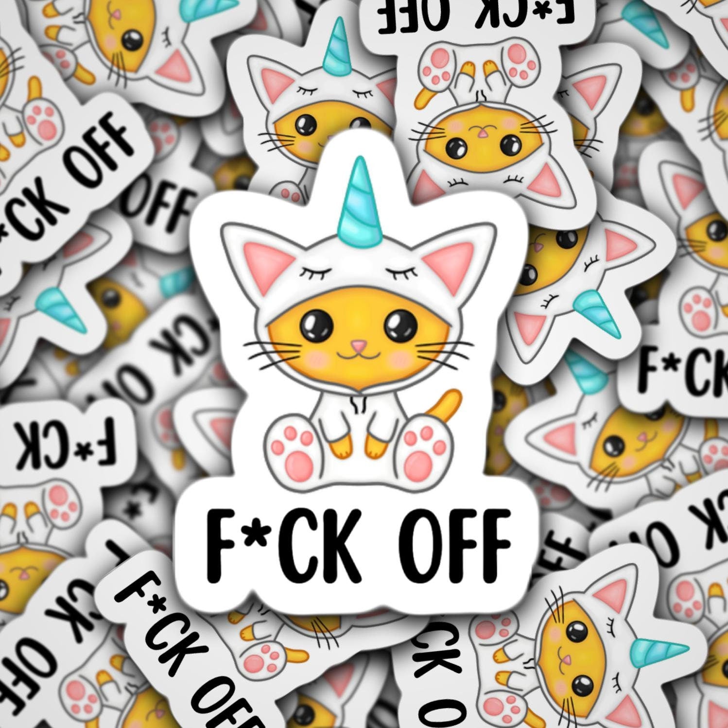 Show off your mood with this funny F*ck off sticker. Cute cat dressed as a unicorn sticker.