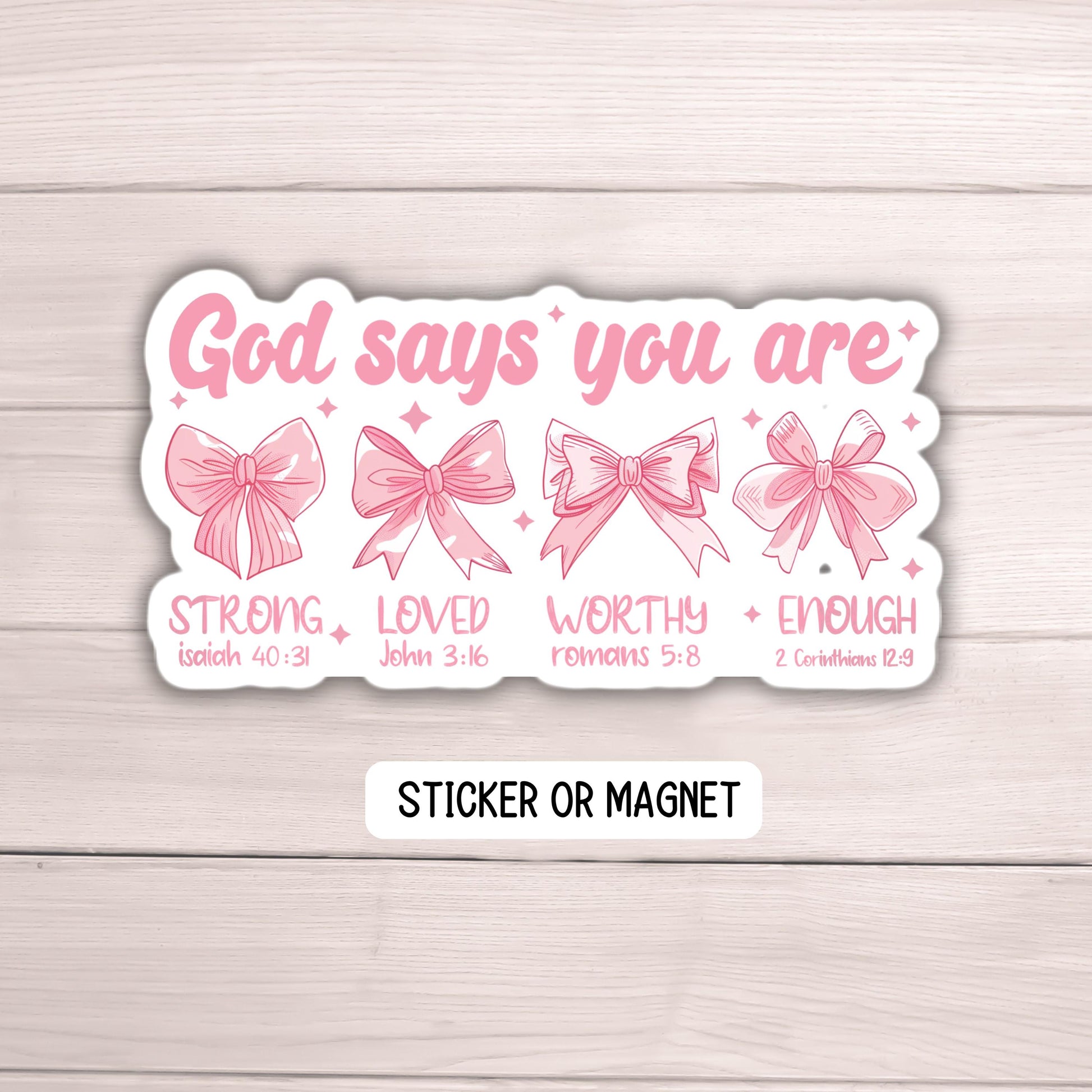 God says you are Sticker Coquette pink bows Faith Jesus Sticker retro Bible faith Christian sticker Jesus sticker motivational sticker