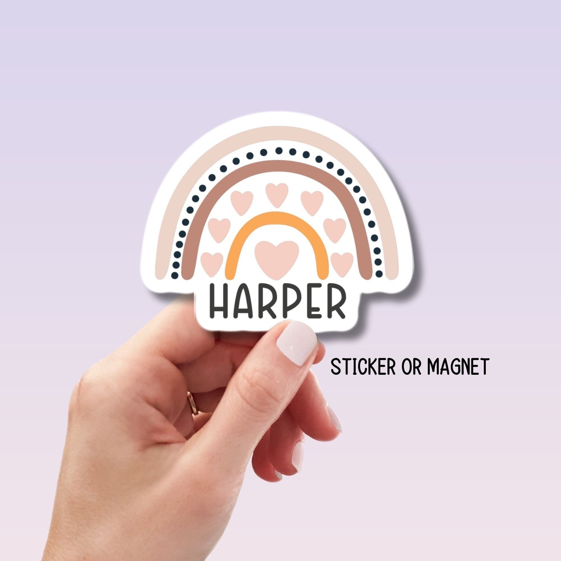 Kids name sticker Boho Rainbow name sticker Personalized name stickers Custom Name aesthetic stickers neutral color name gift Pink rainbow