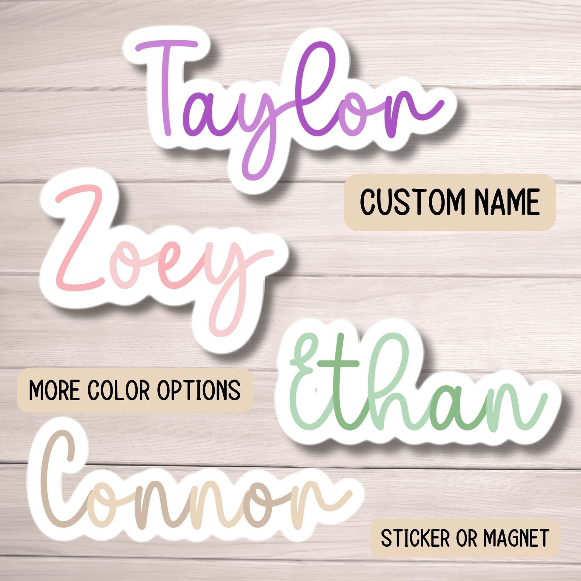 Kids name sticker Custom name sticker Personalized Name Sticker Name magnet Water bottle sticker Tumbler cup sticker rainbow letters script