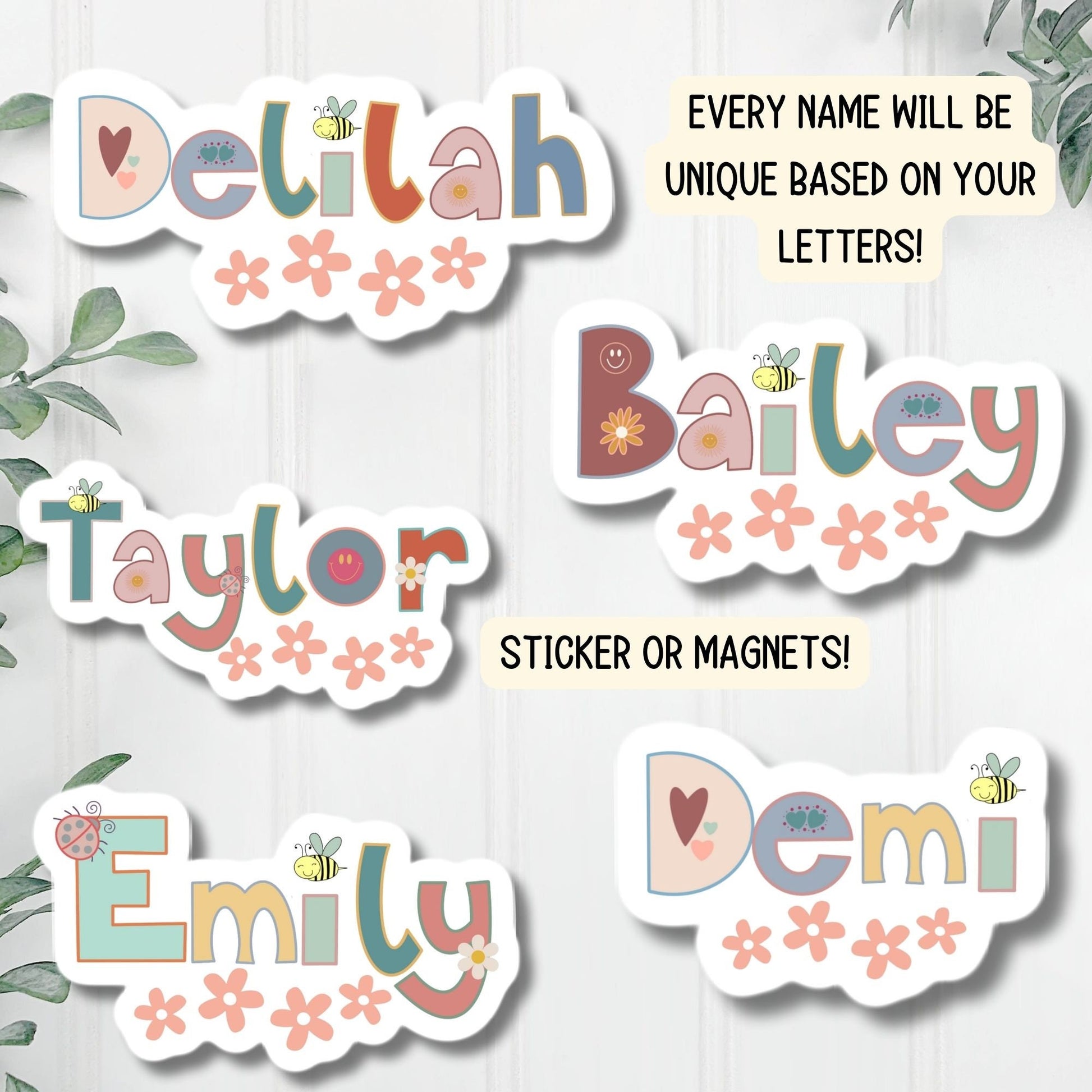 Kids name sticker, Personalized name stickers, Custom Name Stickers, Aesthetic stickers, best friend gift, retro, water bottle name sticker