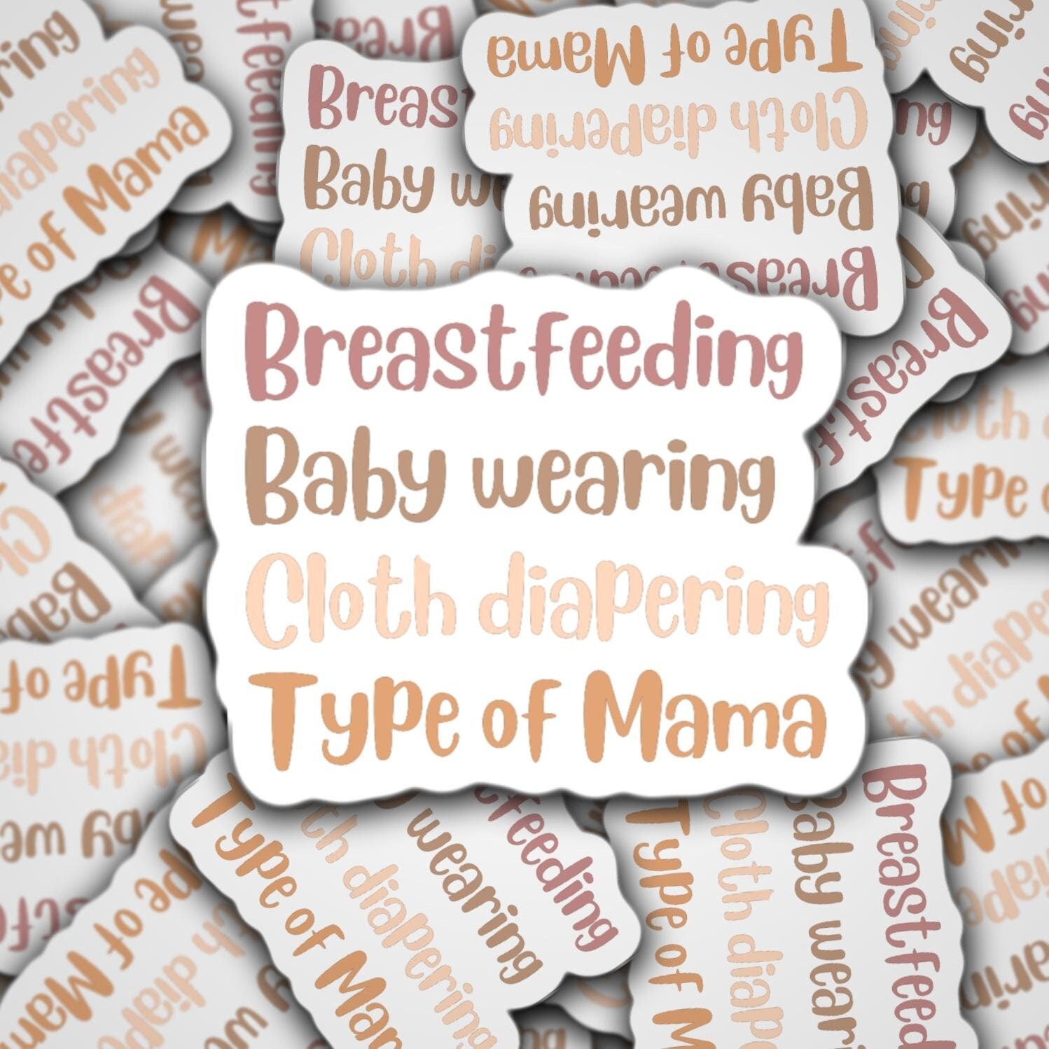 Breastfeeding baby wearing cloth diapering type of mama sticker