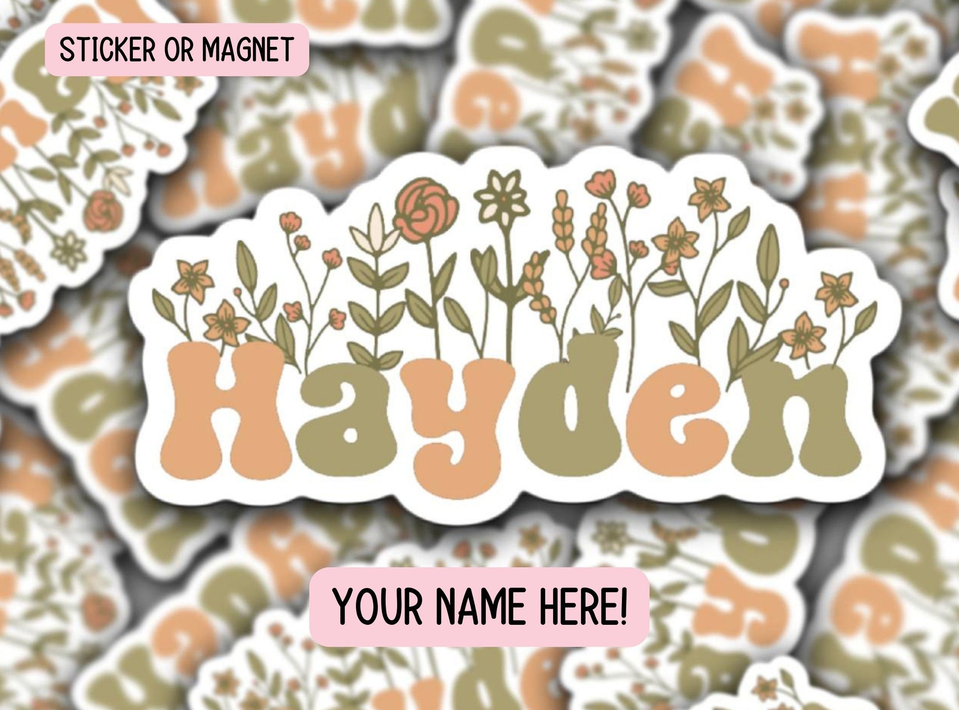 Personalized Custom Name Sticker Retro floral name sticker Aesthetic stickers best friend gift kids name retro water bottle minimalist gift