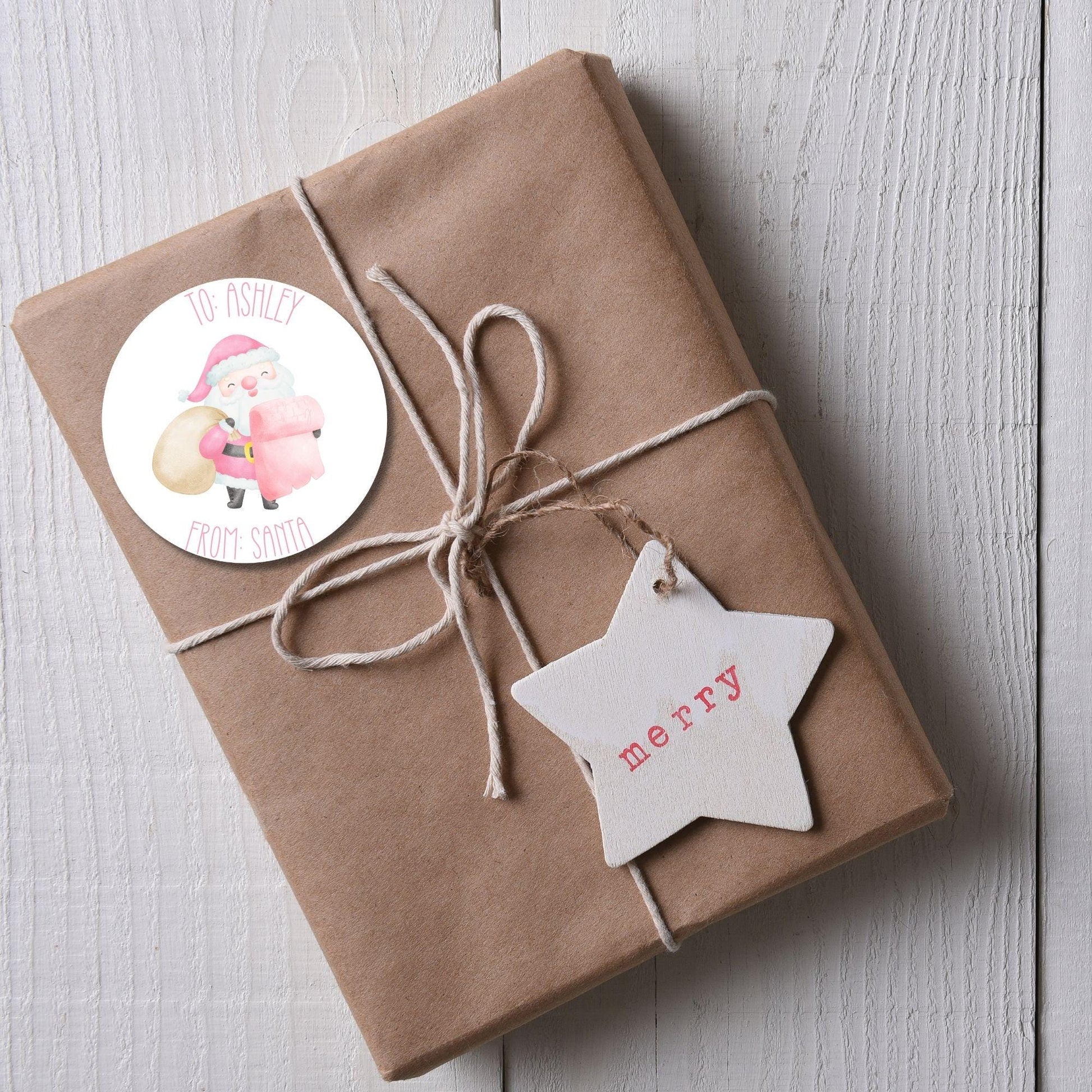 Pink Custom from Santa sticker girls Santa Claus Gift label Personalized Christmas Name Stickers Christmas name tag name Present girly