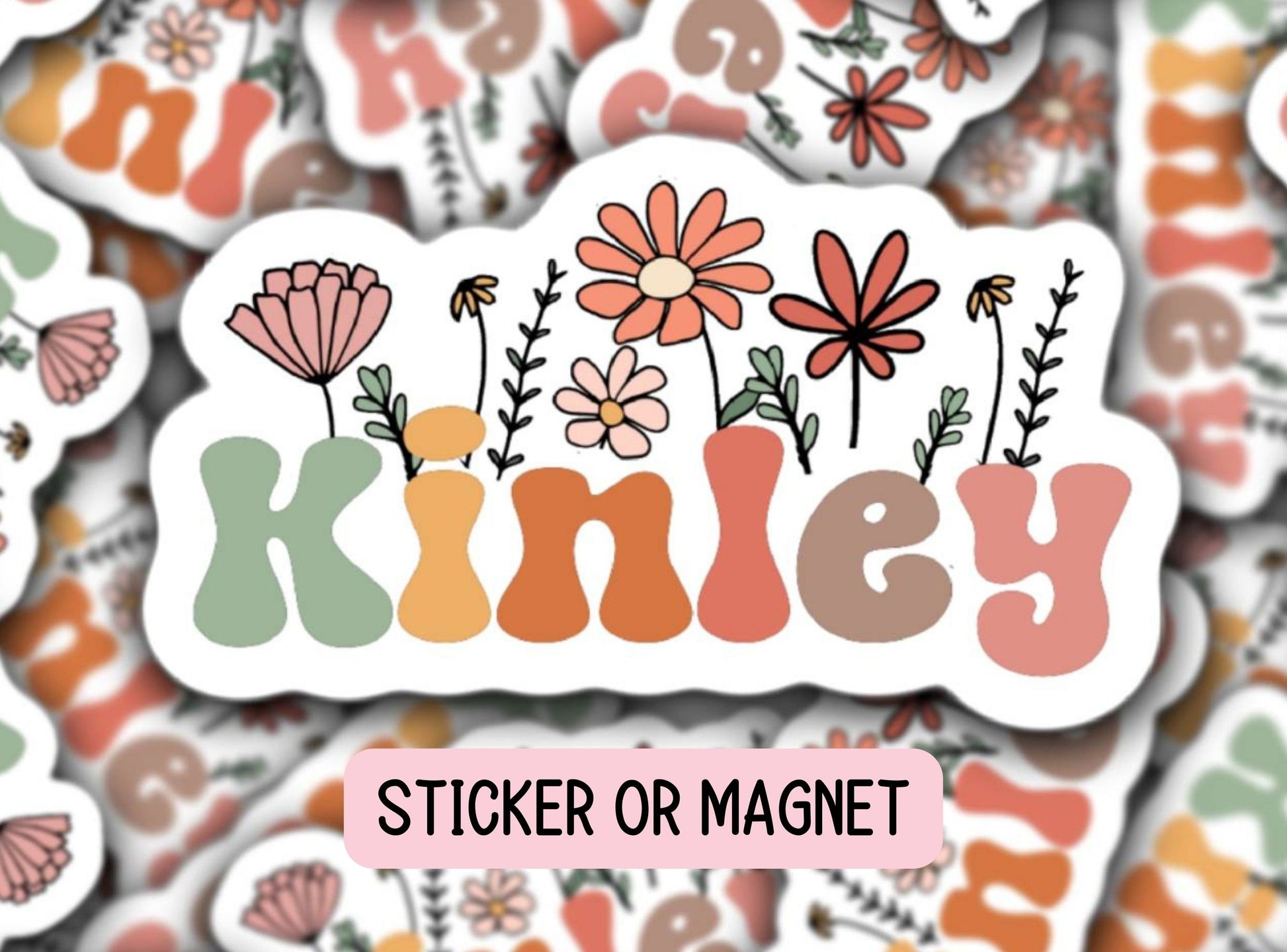 Retro floral name sticker Personalized name stickers Custom Name Sticker Aesthetic sticker Water bottle sticker Kids name sticker Retro font