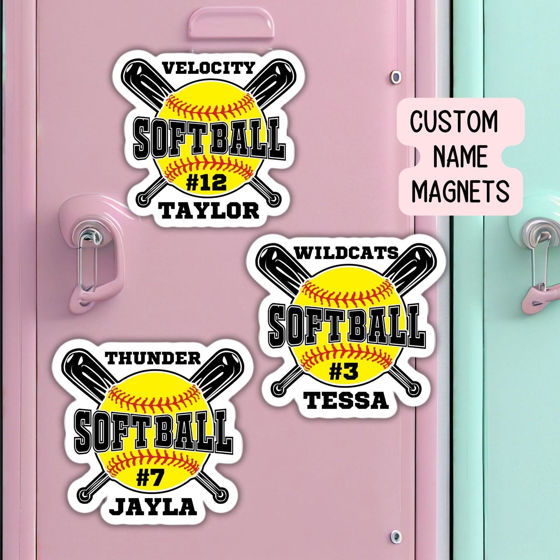 Softball Custom name Magnet Softball team Sports name personalized magnet locker magnet fridge magnet kids name magnet locker decor softball