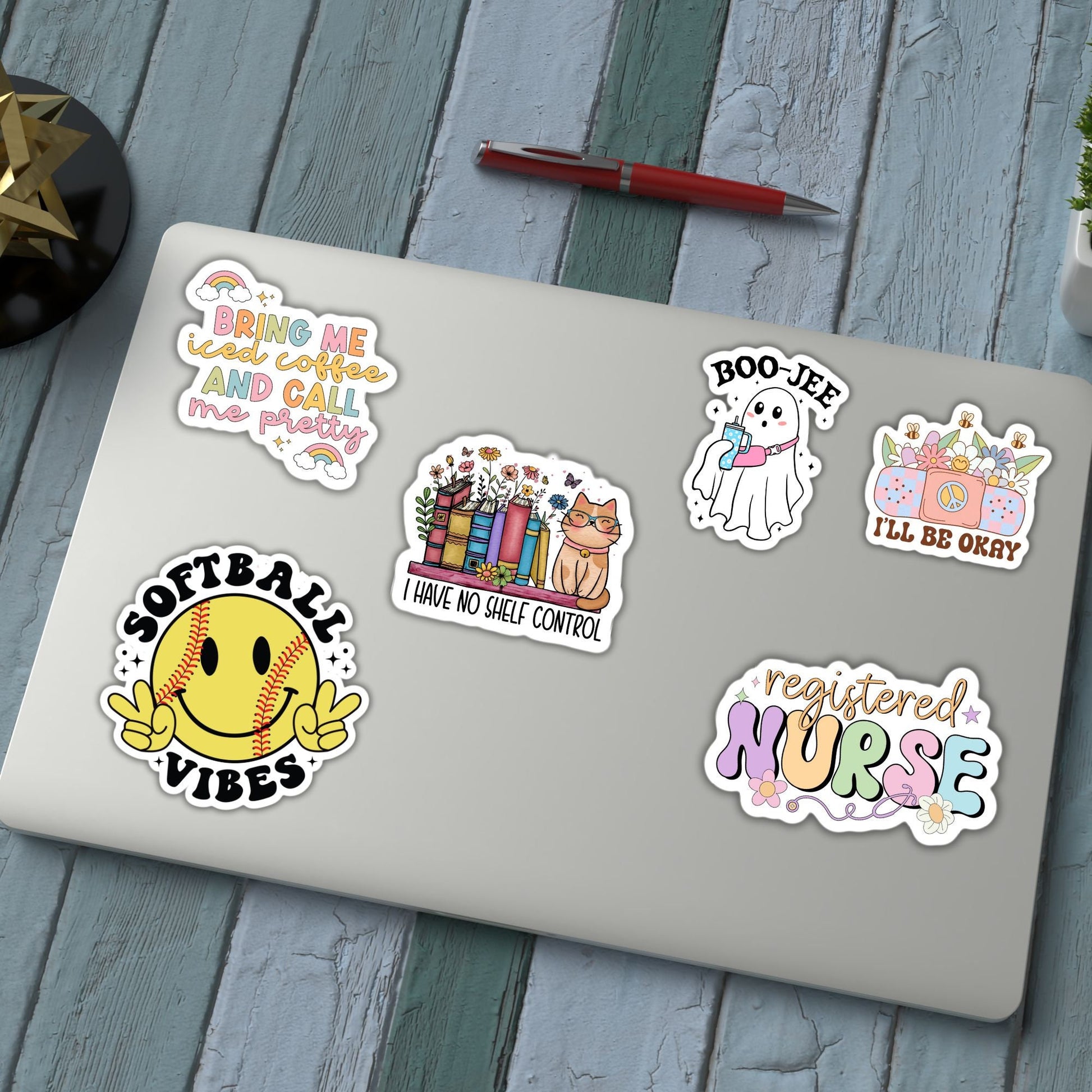 Stickers can be placed on almost any smooth surface- journals, notebooks, phone case ,Yeti, water bottles, laptop, mirrors, scrapbook, skateboard, guitar, etc. and make a great gift for friends and family for holidays or birthdays, or a great addition to your own collection.