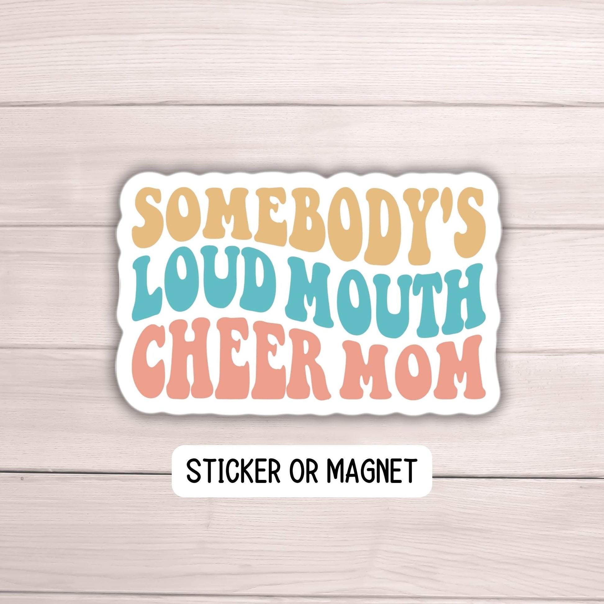 Somebodys loud mouth cheer mom cheerleader pom pom Cheer mama team sticker water bottle notebook Magnet fridge tumbler cup sticker gift